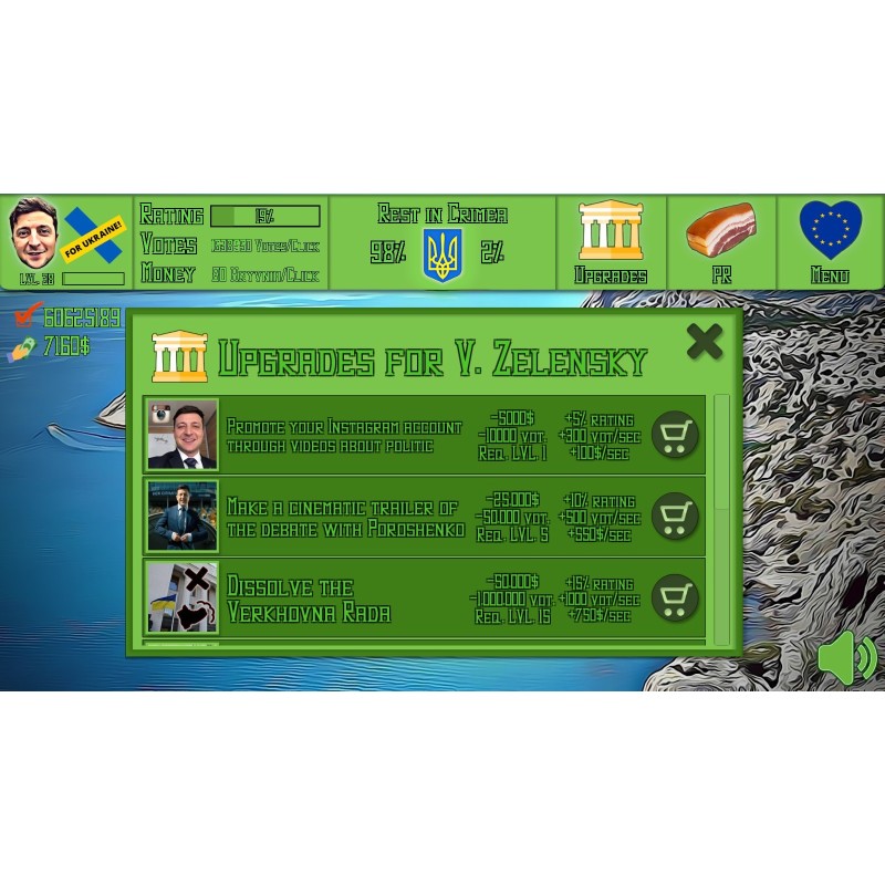 ZELENSKY vs POROSHENKO: The Destiny of Ukraine system requirements Memory: 2 GB Graphics Card: NVIDIA GeForce 7200 GS CPU: Intel Core 2 Duo E6850 File Size: 500 MB OS: Windows XP/Vista/7/8/10 ZELENSKY vs POROSHENKO: The Destiny of Ukraine minimum requirements Memory: 1 GB Graphics Card: NVIDIA GeForce 7200 GS CPU: Intel Core 2 Duo T7250 File Size: 500 MB OS: Windows XP/Vista/7/8/10