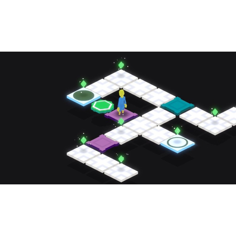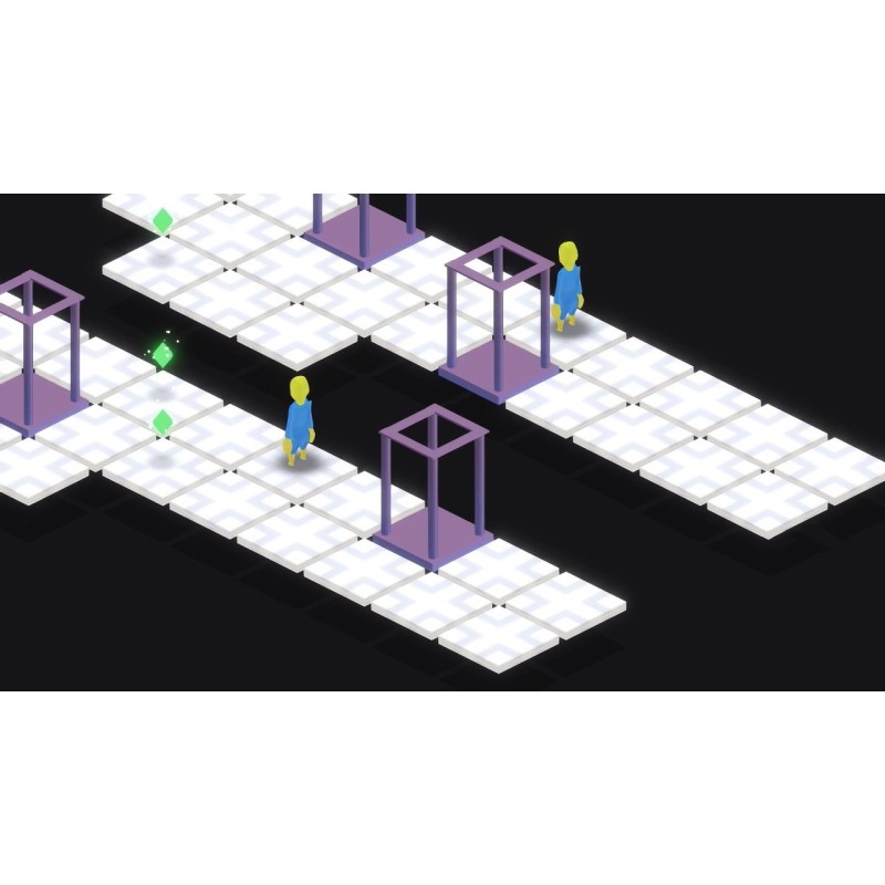 Atmospheric isometric puzzler. Collect green...