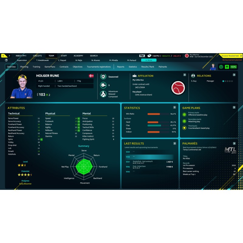 Put on the suit of a tennis coach and manager...