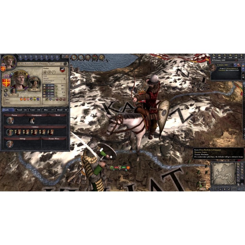 OS:Windows XP/Vista/7 Processor: Intel® Pentium® IV 2.4 GHz or AMD 3500+ Memory:2 GB RAM Graphics:NVIDIA® GeForce 8800 or ATI Radeon® X1900 video card, 512Mb graphics memory required Hard Drive:2 GB HD space Sound:DirectX compatible sound card Other Requirements:Broadband Internet connection Additional:3-button mouse, keyboard, speakers, Internet connection for multiplayer, resolution at least 1024 x 768, Requires the base game Crusader Kings II